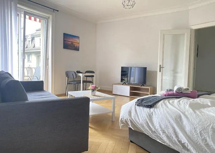 Cozy Studio Close To City Center And Train includes an equipped kitchenette featuring an oven and a dishwasher. Geneva International airport is at a 49-minute driving distance, and Mon Repos bus stop is in close proximity to the accommodation.